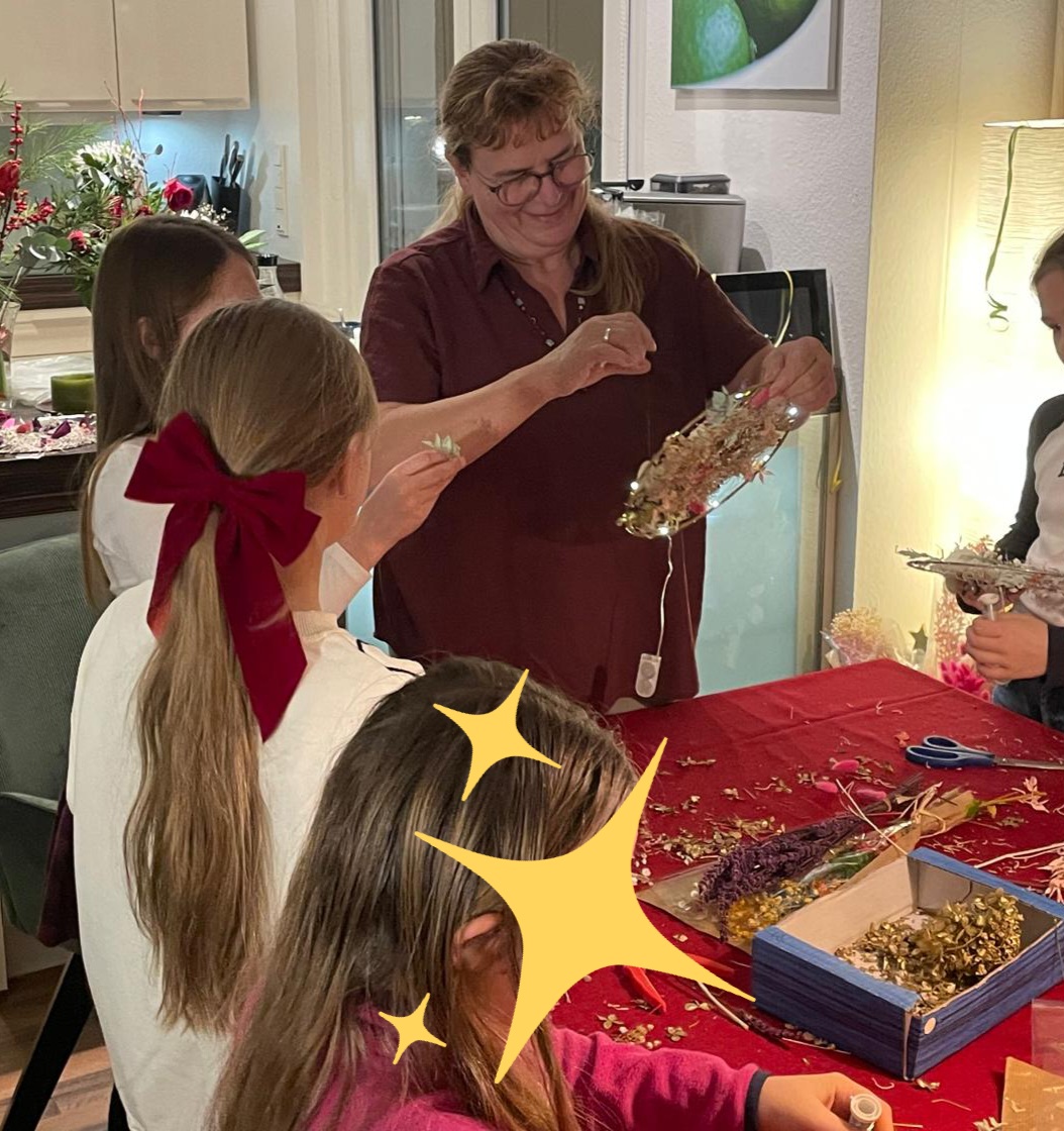 Gemeinsam in kleiner Runde kreativ sein, abschalten und entschleunigen und fast wie von selbst das eigene Können entdecken. Mit meiner fachlichen Unterstützung setzen Sie eigene Ideen z.B. beim Kränze binden oder der Gestaltung eines Flowerloops einfach um.